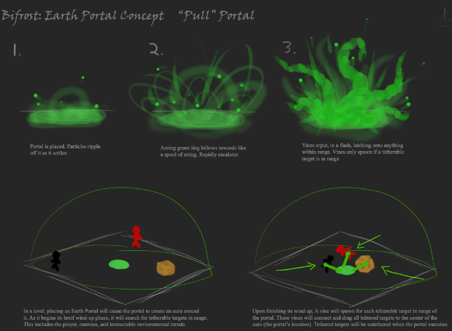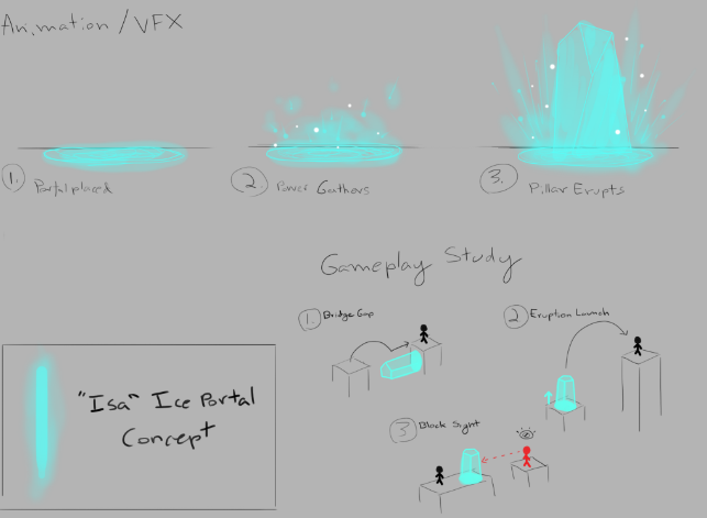 To support this design direction, concepts I designed focused primarily on simple, predictable, versatile mechanics that could mainly be leveraged as traversal tools. The first two Rift ideas that came to fuition centered on elements: the Ice Rift and Earth Rift.