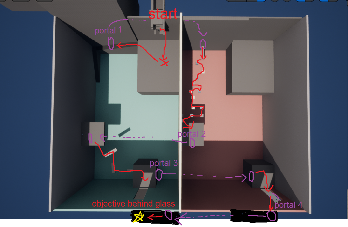 With the problem solved and the deadline for the game rapidly approaching, I moved to help finish our 3rd level for the game. Most of the level layout had already been blocked in-engine by other designers on the project, but the clarity of level progression as well as assets for the level were lacking. That is where I focused my attention.